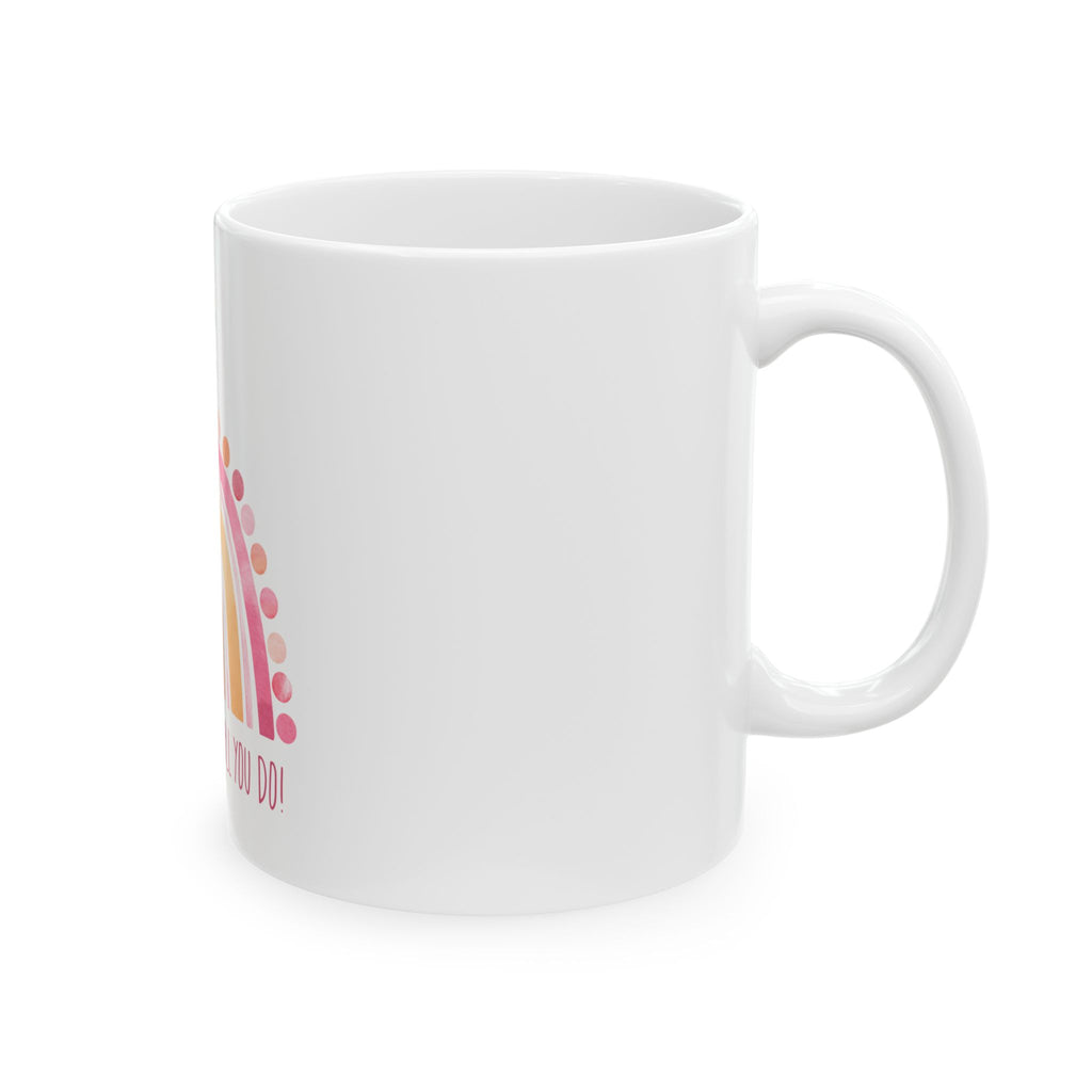 Brighten your day with our delightful Imaginate 1111 Boho rainbow ceramic mug, perfect for sipping your favorite beverages!